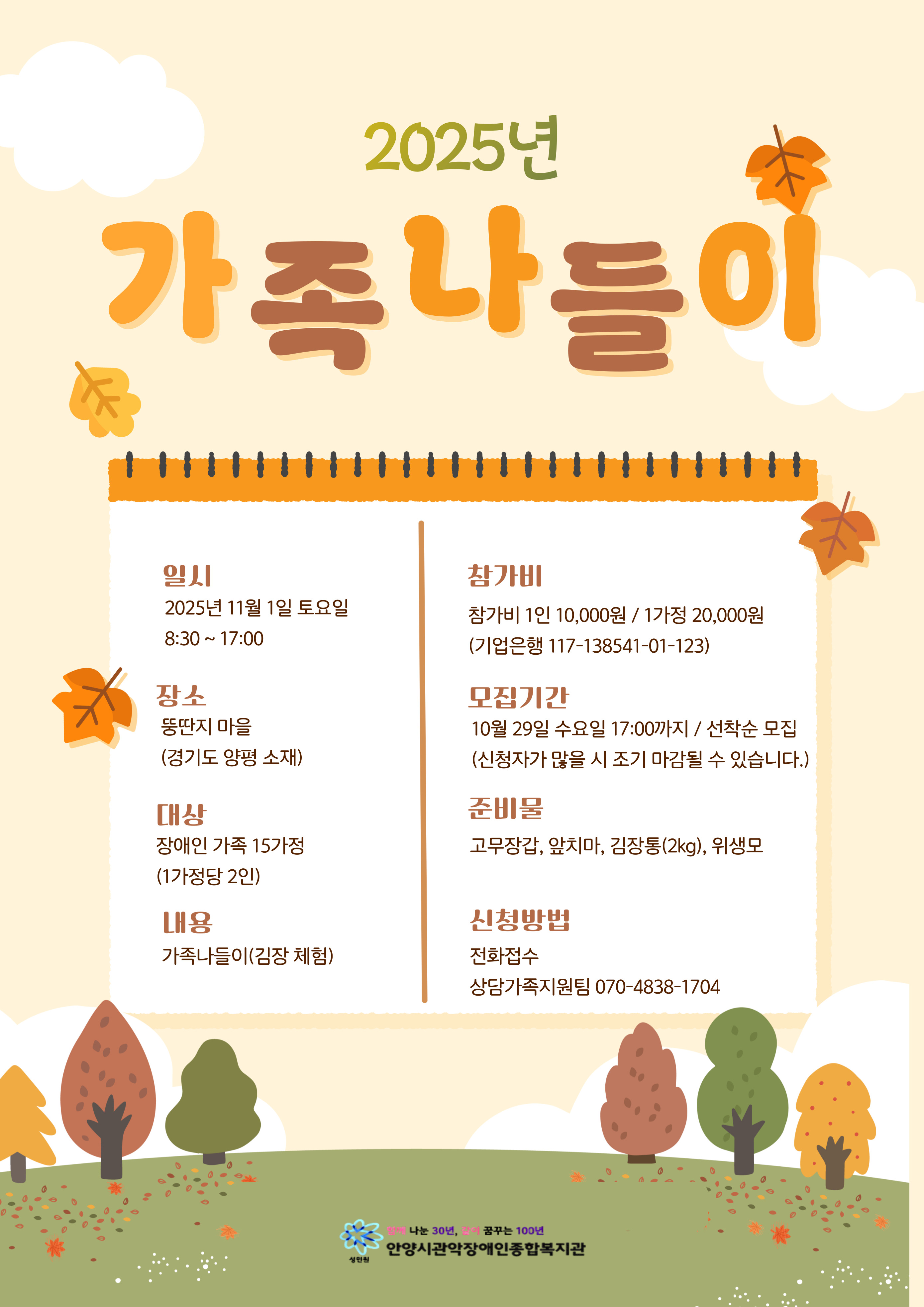 2025년 가족나들이에 많은 관심과 참여 부탁드립니다.
