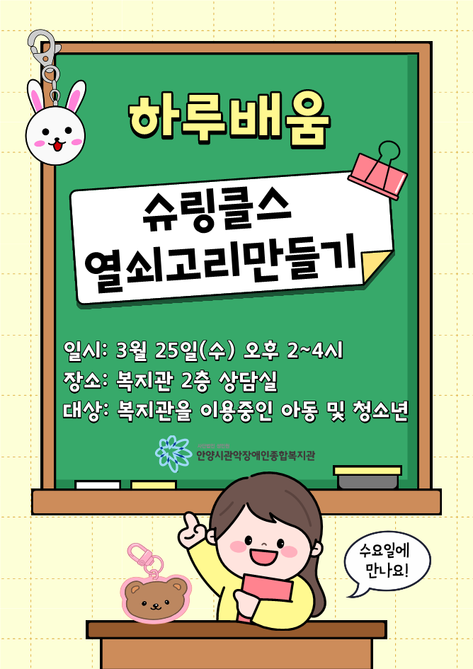 하루배움 슈링클스 열쇠고리 만들기가 3월 25일(수)