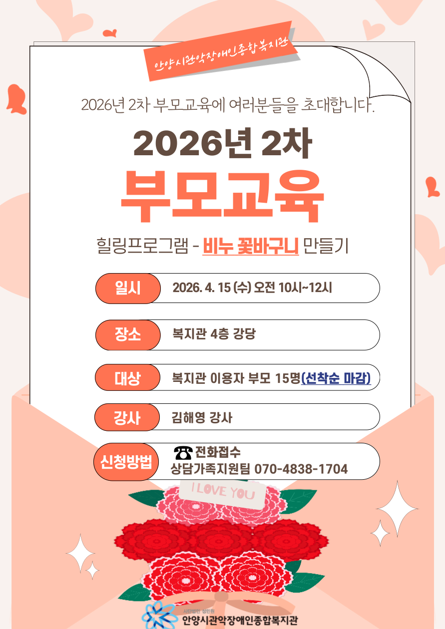 2차 부모교육 참여자를 모집하오니 많은 관심과 참여 부탁드립니다.