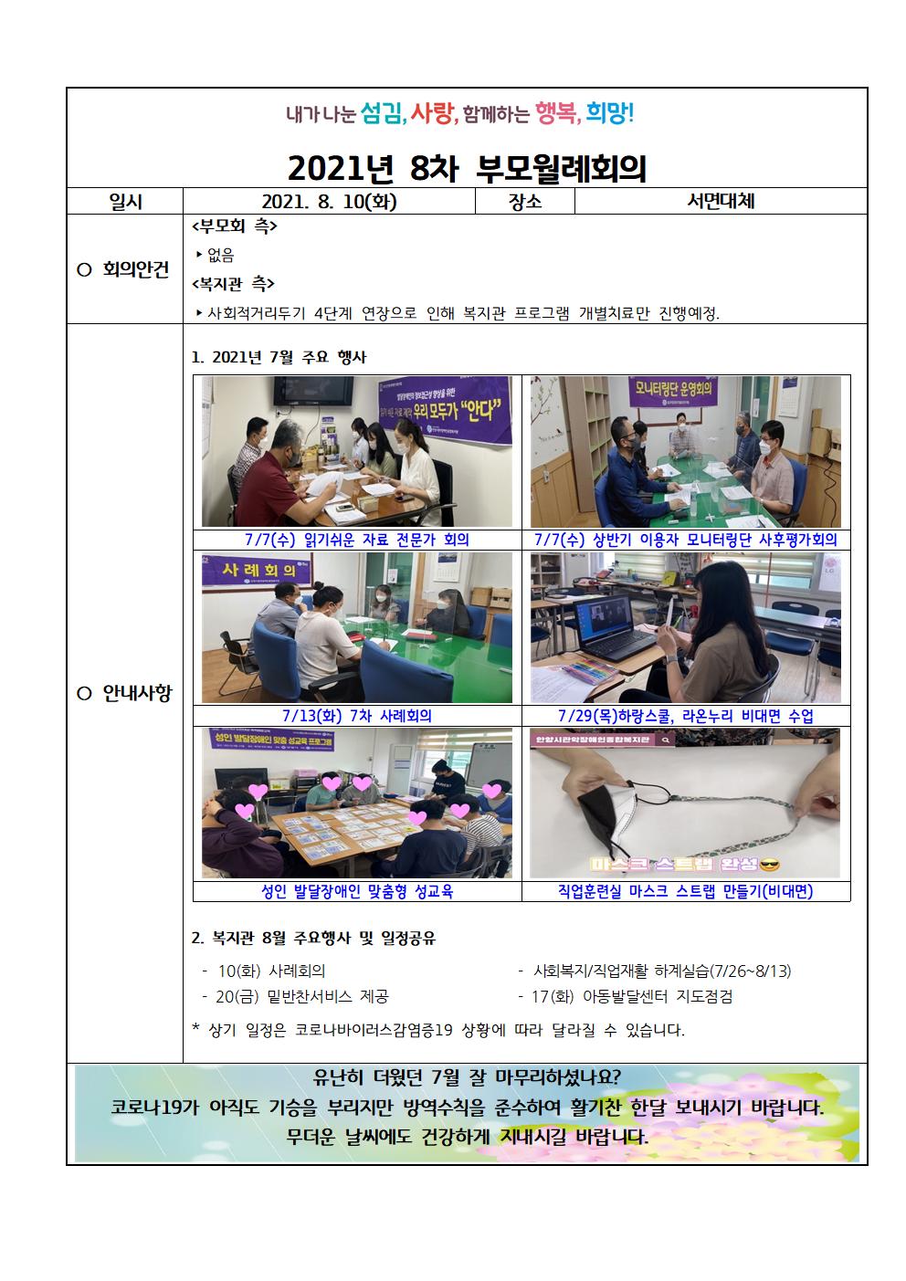 2021년 8차 부모월례회의 안건