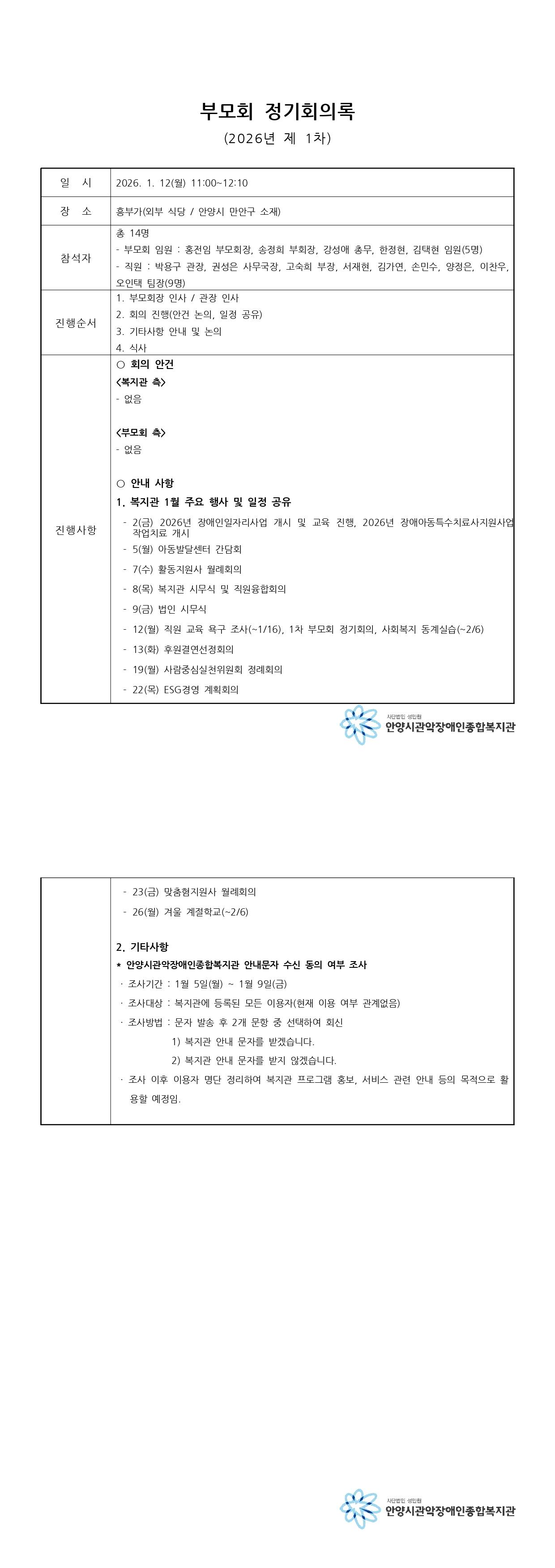 ★2026년 1차 부모회 정기회의 회의록 공유★