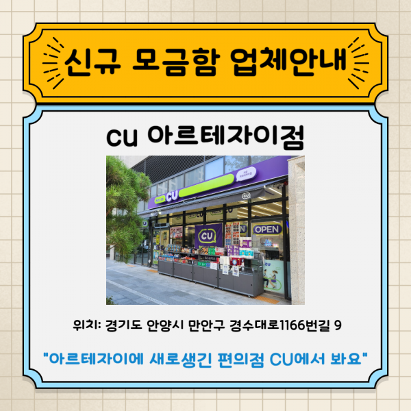 목록 CU 아르테자이점 페이지 정보 이재인 조회 554 입력 2023-09-08 15:45 댓글 0 본문 위 업체는 안양시관악장애인종합복지관에 후원해주시는 '든든한 이웃'입니다.많은 관심과 이용부탁드립니다.주소: 경기도 안양시 만안구 경수대로 1166번길 9CU 아르테자이점 관련링크 https://map.naver.com/p/entry/place/1327000908?lng=126.9180202&lat=37.… 445회 연결 목록 이전글이마트24 안양석수경남점 2023.09.08 다음글더 크루아상 마켓 2023.03.17 댓글 0 댓글목록 등록된 댓글이 없습니다.