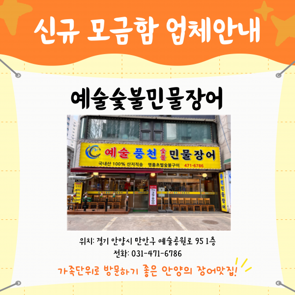 목록 예술풍천민물장어 페이지 정보 이재인 조회 547 입력 2023-03-17 11:00 댓글 0 본문 위 업체는 안양시관악장애인종합복지관에 후원해주시는 '든든한 이웃'입니다.많은 관심과 이용부탁드립니다.주소: 경기도 안양시 만안구 예술공원로 95, 1층연락처: 031-471-6786풍천민물장어 안양예술공원점장어,먹장어요리 관련링크 https://map.naver.com/v5/entry/place/1431924888?lng=126.92771702201789… 494회 연결 목록 이전글빽다방 안양예술공원점 2023.03.17 다음글CU 예술공원사거리점 2023.03.17 댓글 0 댓글목록 등록된 댓글이 없습니다.