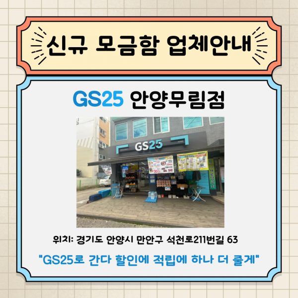 목록 GS25 안양무림점 페이지 정보 이재인 조회 458 입력 2024-08-09 17:01 댓글 0 본문 위 업체는 안양시관악장애인종합복지관에 후원해주시는 '든든한 이웃'입니다.많은 관심과 이용부탁드립니다.주소: 경기도 안양시 만안구 석천로211번길 63GS25 안양무림점 목록 이전글GS25 안양아르떼자이점 2024.12.03 다음글세븐일레븐 안양석수해피점 2024.08.09 댓글 0 댓글목록 등록된 댓글이 없습니다.
