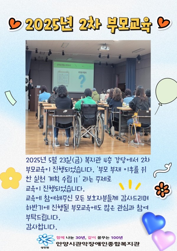 목록 2025년 2차 부모교육 페이지 정보 서재현 조회 150 입력 2025-05-23 14:04 댓글 0 본문 . 목록 이전글2025년 직업지원팀 2차 훈련생 동아리 2025.05.26 다음글2025년 늘이룸 8차 자기결정훈련 활동(과천과학과 관람) 2025.05.22 댓글 0 댓글목록 등록된 댓글이 없습니다.