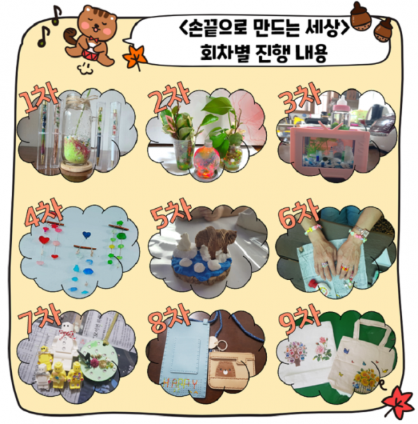 1차 ‘하바리움 볼펜 만들기’를 시작으로 현재 9차까지 진행하였으며, 총 16회차 진행예정입니다. 앞으로 진행될 회차들을 기대해주세요~