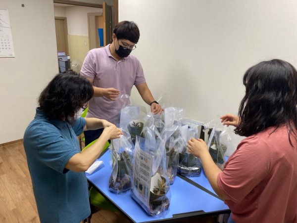 주간보호센터에서는 코로나-19 장기화로 인해 프로그램을 참여하지 못하는 이용자들에게 비대면 서비스로 화분만들기 키트를 9월 1일과 2일 이틀간 전달하였습니다.
