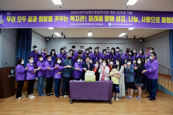 5월 26일 화요일 안양시관악장애인종합복지관의 개관 25주년을 기념하기 위하여 운영법인 성민원 직원, 복지관 직원, 부모회 대표 등이 한 자리에 모였습니다.