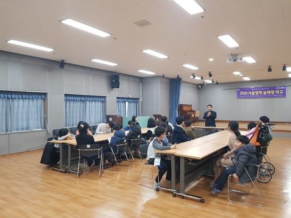 안양과천교육지원청의 지원으로 2019년 겨울방학 늘해랑 학교가 1월 28일(화)부터 ~ 10(월)까지 2주간의 늘해랑학교가 12명의 통등학생 참가자로 구성되어 입학식으로 프로그램을 시작하였습니다. 친구들이 다양한 외부체험활동과 내부 활동을 통하여 건강하고 즐거운 겨울방학을 함께 보낼 수 있었으면 좋겠습니다.