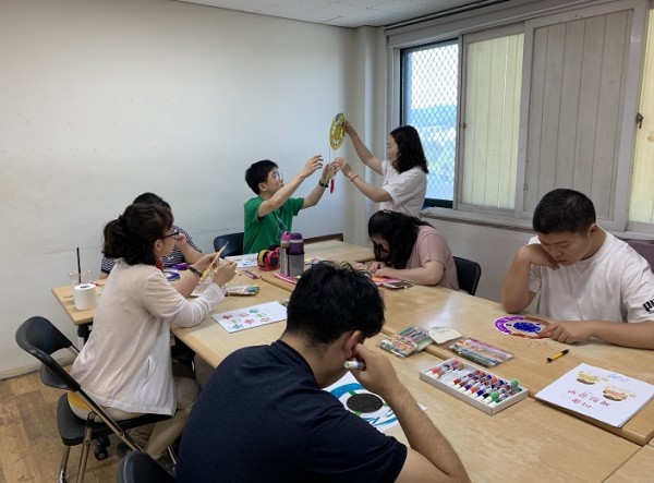 2019년 직업지원팀에서는 문화체육관광부로부터 지원받아 3월부터 11월까지 성인 장애인 10명을 대상으로 미술활동을 진행하였습니다. 스트링아트, 클레이, 도자기 공예, 냅킨아트 등의 내용으로 총 35회기 진행하여 다양한 공예분야를 경험할 수 있는 기회를 제공하였습니다. 작품을 완성함으로써 자신감 향상은 물론 참여자들간 긍정적인 대인관계 형성이 이루어질 수 있었습니다. 앞으로도 성인 장애인의 개인능력향상을 위해 노력하는 직업지원팀이 되겠습니다.