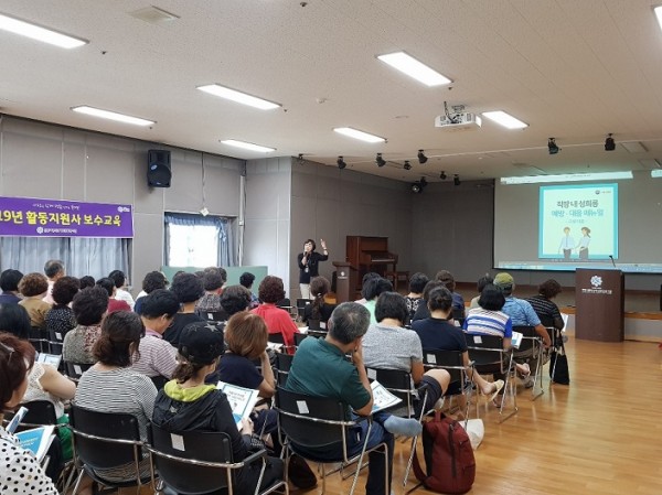 목록 2019년 월례회의 및 보수교육 진행 페이지 정보 윤은정 조회 1,764 입력 2019-08-30 16:36 댓글 0 본문 2019년 8월 23일(금) 활동지원사 월례회의및 보수교육을 실시하였습니다. 80명의 활동지원사가 회의에 참석하였으며 보수교육으로 직장내 성희롱 예방 교육을 진행하여 활동지원사 현장에서 겪을 수 있는 상황과 역활에 대해 상기하는 시간이 되었습니다. 목록 이전글2019년 한마음운동회 "함께, 행복한 어울림" 2019.09.02 다음글7차 자원봉사자 간담회 2019.08.30 댓글 0 댓글목록 등록된 댓글이 없습니다.