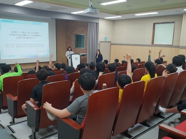 5월 30일 목요일 양지초등학교에서 장애이해교육이 진행되었습니다! 4~6학년을 대상으로 교육을 진행하였는데,장애에 대한 기본적 개념 설명 및 교육 등을 진행하여 장애에 대한 개념을 확립하고, 우리 주변인 이웃에 장애가 가까이 있다는 사실을 말하며 그들에 대한 에티켓 등을 교육하는 시간을 가졌습니다. 이번 교육을 통해 자라나는 아이들에게 장애가 차별이 되지 않는 사회가 되기를 바라봅니다^_^