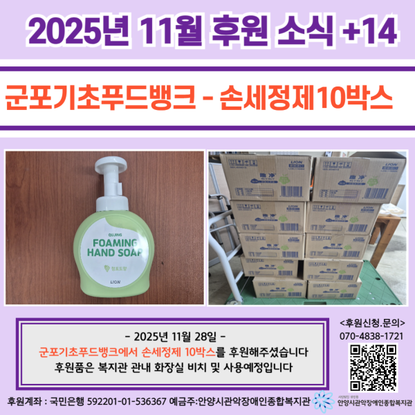 후원해주신 군포기초푸드뱅크에 감사의 마음♥을 전합니다