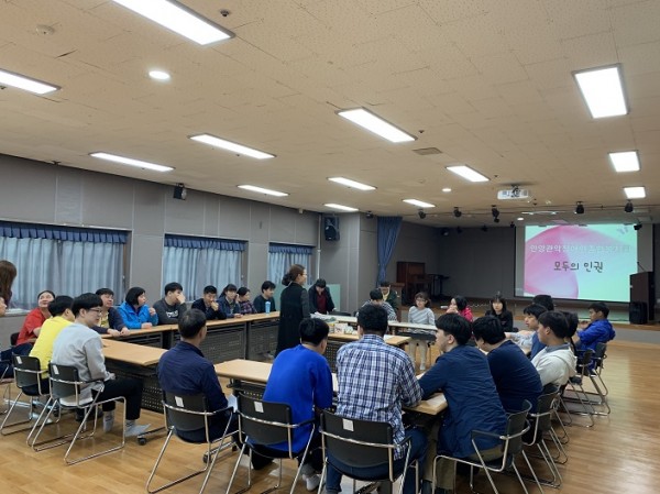 지난 5월 9일(목) 직업지원팀 훈련생을 대상으로 인권교육을 진행하였습니다. 정희정 강사와 교육을 진행하였으며, 훈련생들이 이해하기 쉽도록 다양한 활동으로 진행되었습니다. 개인이 가진 권리 중에서 표현의 자유에 대해 교육하였으며 개개인의 성격과 특성이 모두 다르므로 인정해주어야 하는 것임을 배울 수 있는 시간이었습니다.
