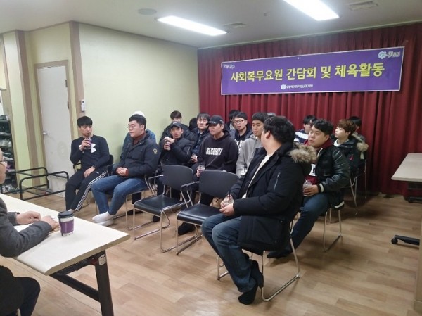 목록 2019년 1월 사회복무요원 간담회 실시 페이지 정보 박성완 조회 1,891 입력 2019-01-15 10:25 댓글 0 본문 2019년 1월 14일 14시부터 15시까지 사회복무요원 간담회를 실시하였습니다. 장소 : 복지관 다목적1실 참석인원 : 사회복무요원 18명, 관장, 국장, 담당직원 사회복무요원 간담회를 통해 서로간 화합의 기회가 되었고 공무수행자로서 갖추어야 할 기본 자세 및 복무규정습득 등 역량강화가 되었습니다. 목록 이전글동계 대학생 행정체험 연수 2019.01.16 다음글2018년 겨울방학 늘해랑학교 2019.01.09 댓글 0 댓글목록 등록된 댓글이 없습니다.
