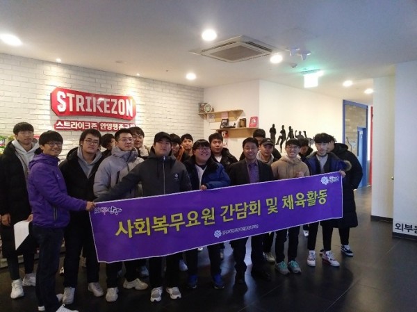 목록 12월 사회복무요원 체육활동 및 간담회 실시 페이지 정보 박성완 조회 2,244 입력 2018-12-12 19:29 댓글 0 본문 2018년 12월 12일 14시부터 16시까지 사회복무요원 체육활동 및 간담회를 실시하였습니다. 장소 : 스트라이크존 안양평촌구장 참석인원 : 사회복무요원 17명, 관장, 담당직원 체육활동(스크린야구)을 통해 사회복무요원간 화합의 기회가 되었고 일상의 피로를 풀 수 있었습니다. 목록 이전글경인교육센터 사회복무요원 실습 소양교육 강사 위촉장 전달식 2018.12.13 다음글2018년 직업재활센터 홍보 2018.12.12 댓글 0 댓글목록 등록된 댓글이 없습니다.