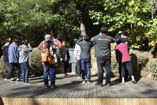 2018년 안양시 성인 장애인 평생교육 지원사업으로 진행되고 있는 '발달장애 성인초기 대상 음악치료·원예치료' 수업의 일환으로 2018년 10월 19일(금) 총 10명의 발달장애 친구들이 안양예술공원에서 '숲체험' 활동을 진행하였습니다.