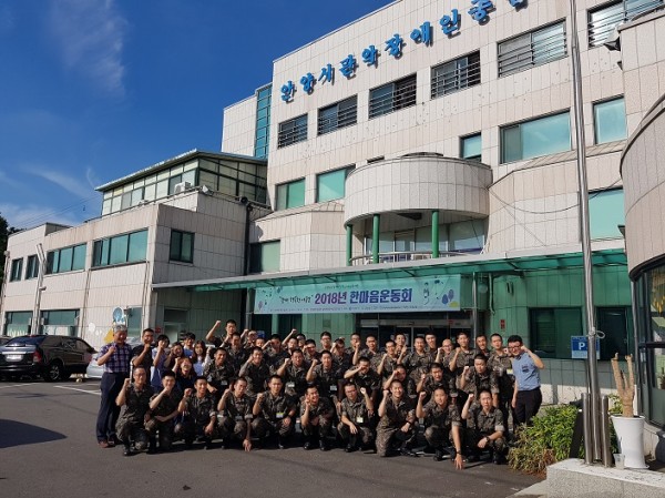 지난 8월 22일 안양시에 위치한 안양시관악장애인복지관(관장 박용구)에서는 51사단 철마부대 주임원사(원사 한부일)와 부사관 및 병사 40여명이 복지관에 방문하여 봉사활동을 진행했다.