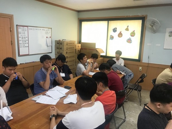 아동복지시설에서 근무하는 사회복무요원들이 실습을 하면서