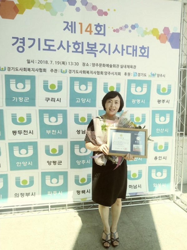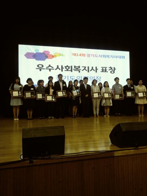 경기도사회복지사대회를 통하여 경기도 15만 사회복지사들의 단결과 단합을 도모하고 한 해 동안의 노력에 대한 격려 및 치하를 갖는 축제의 시간을 가졌습니다. 1부에서는 우수사회복지사 표창부문에서 지역사회지원팀 권성은팀장이 경기도의회의장상을 수상하였습니다.