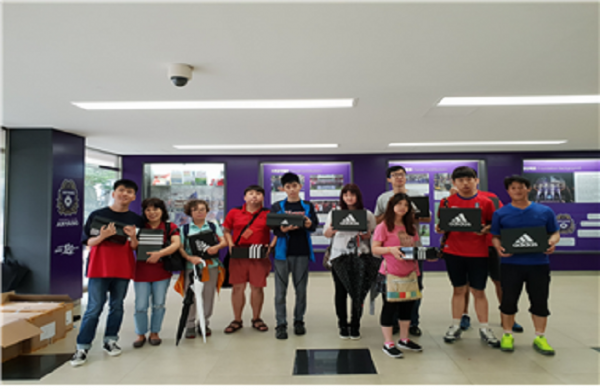 관악FC 축구교실 참여자 및 가족이 함께 즐겁게 축구경기를 관람하였습니다. 이날 FC안양 안산과의 경기에서 승리하여 더욱 기분 좋은 시간이었습니다. 또한 리더스코스메틱과 FC안양에서 관악FC의 참여 장애인들에게 축구화를 24족 후원해주었습니다. 앞으로는 축구교실에 참여할 때 축구화를 착용하고 프로그램을 진행 할 수 있게 되었습니다. 다시 한 번 감사드립니다.