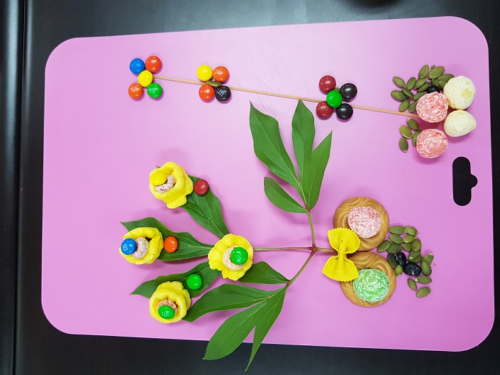 장애자녀를 둔 부모를 대상으로 푸드아트테라피를 통해 친숙한 음식재료를 가지고 놀이과정을 통해 자신을 솔직하게 표현하면서 내면상태를 살피는 시간이 되었습니다.