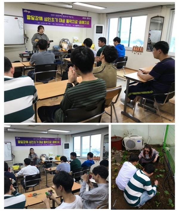 안양시평생교육원의 지원으로 운영되는 인문교양교육 발달장애 성인초기 대상 음악치료 ·원예치료 프로그램이 매주 목, 금 각 1회씩 진행되고 있습니다.