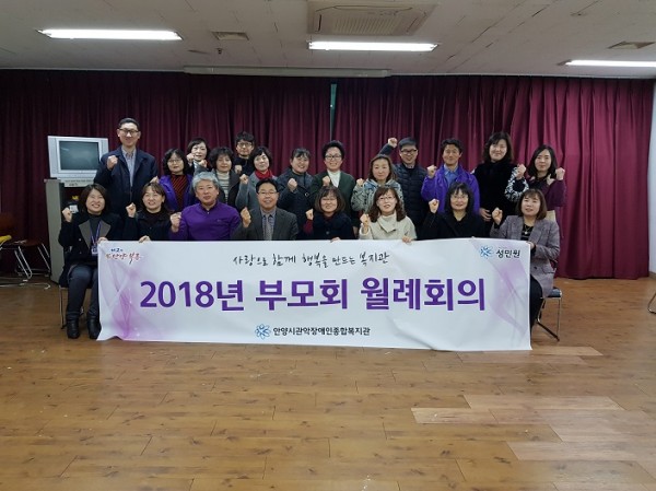 2018년 2월 20일 복지관 다목적 2실에서 관악부모회 임원들과 복지관 직원들이