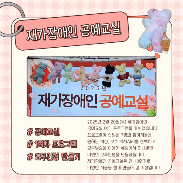 2025년 2월 20일(목) 재가장애인 공예교실 여가 프로그램를 개시했습니다.