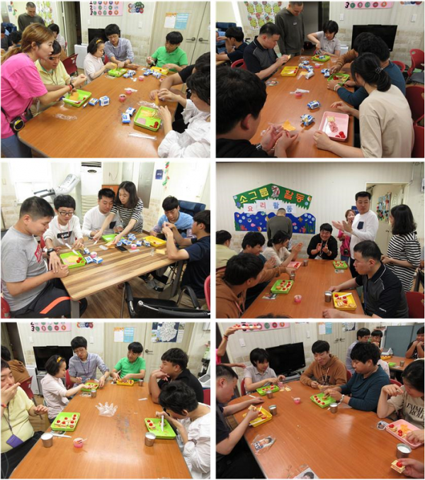 주간보호센터에서는 소그룹활동으로 자신이 좋아하는 과자를 가지고 크래커샌드위치를 만들어보았습니다. 재료(치즈, 토마토)의 효능에 대해 설명한 뒤 각자의 방법대로 겹겹의 층을 쌓아 각양각색의 샌드위치를 만들었습니다. 이용자들이 좋아하는 햄, 치즈가 주 재료가 되어 더욱더 관심을 가졌고, 맛있는 샌드위치를 함께 만든 경인복무실습과 나눠 먹으며 즐거움이 배가되는 시간이 되었습니다.