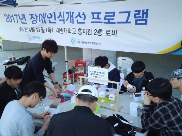 대림대학교 홍지관앞에서 대림대학교 장애학생지원센터와 연계하여 대학생들을 대상으로 진행하였습니다.