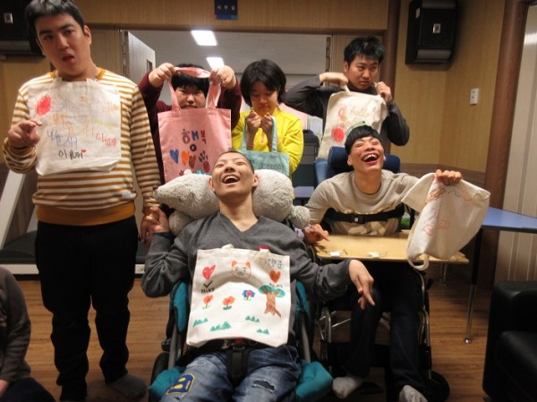 먼저 각 반별로 질서 있게 차례대로 나와 자신이 꾸미고 싶은 가방을 선택하였고 주간보호 친구들이 상상력과 창의력을 펼쳐 에코백 가방을 꾸며 나갔습니다. 가방을 다 꾸민 후에는 각 반에서 한명씩 대표로 나와 에코백가방을 들고 단체 사진을 찍고나서 즐겁게 마무리 하였습니다.