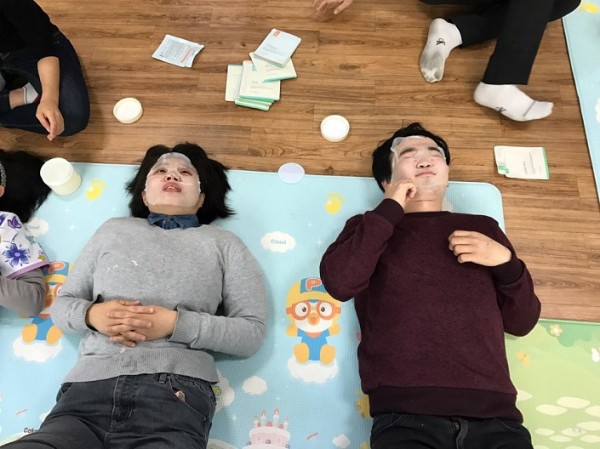 마사지를 다 받고 수분, 진정, 탄력의 팩을 이용자의 얼굴에 붙여 15분에서 20분동안 자신의 마음을 진정도 하고 탄력있는 피부로 만들었습니다.
