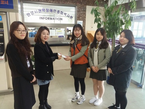 2016년 11월 17일 안양여고 드리밍 부장 김민지 학생이 대표로 복지관에 방문하여