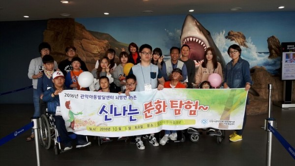 2016년 10월 8일 6차 뇌병변문화존을 끝으로 2016년도 뇌병변문화존 사업을 마무리했습니다. 6차 진행장소로는 일산에 있는 아쿠아플라넷으로 다녀왔는데요 다양한 해양동.식물들을 잘 관찰하였습니다. 또한 바로 옆에 있는 고양 호수공원 일대에서 과학 꿈돌이 Festival을 진행하여 우리 이용자들이 다양한 부스체험을 하는 즐거운 시간을 가졌습니다.