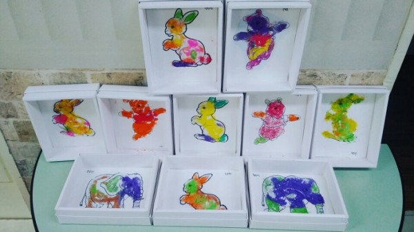 자신이 원하는 색의 모래를 뿌리며 완성!!!!