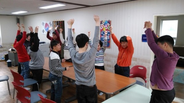 이용자들과 함께 건강 체조와 주의 집중할 수 있는 손 유희,