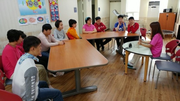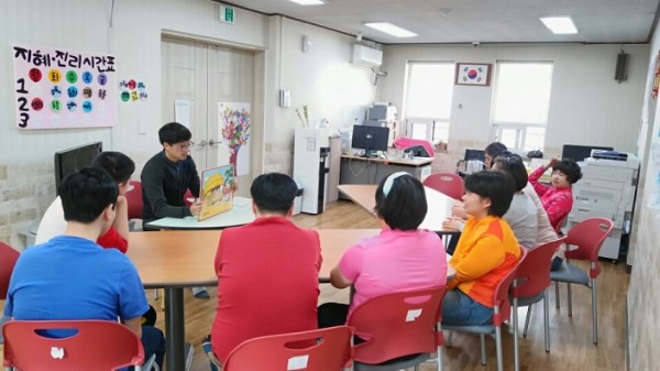주간보호에서 언어학습으로 이용자들에게 구연동화를 들려주었습니다.