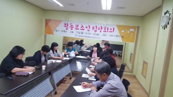 목록 9월 활동보조인 팀장회의 페이지 정보 지역연계팀 조회 2,312 입력 2016-09-20 16:25 댓글 0 본문 9월 활동보조인 팀장회의를 9월19일 10시30분에 진행하였습니다.사례회의를 통하여 이용자가 겪는 어려운점. 지원여부. 방법등을 모색하였습니다.회의를 마치고 점심식사를 통해 관장님이 활동보조인 팀장들에게 하반기에 더욱 활기찬 활동을 위해 격려해 주셨습니다. 목록 이전글주간보호 음악활동 2016.09.23 다음글제17회 안양시 사회복지의 날 기념식 및 한마당 행사 2016.09.13 댓글 0 댓글목록 등록된 댓글이 없습니다.