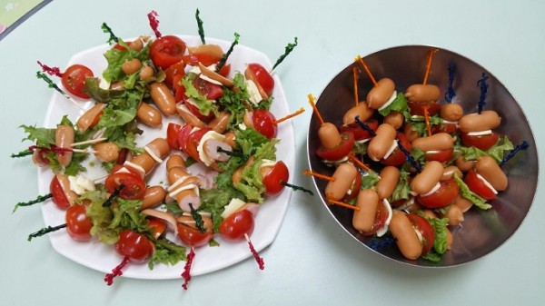 채소와 치즈,소세지를 손질한 후 먹기 좋게 자신의 방식대로 요리조리 꽂아서 소세지 햄버거를 완성!!