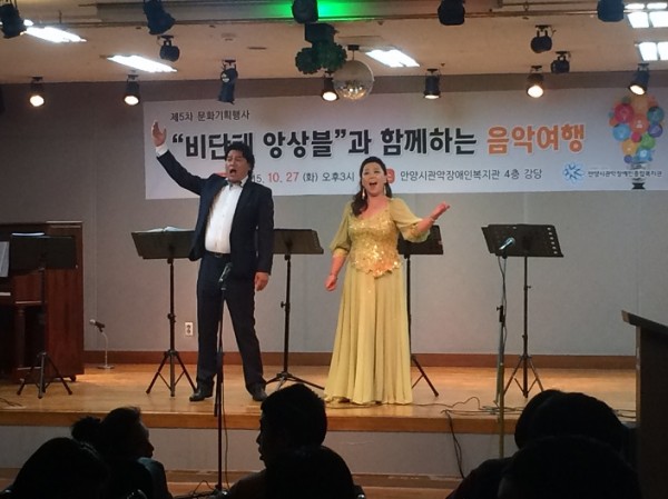 목록 제5차 문화기획행사 페이지 정보 운영자 조회 3,264 입력 2015-10-29 11:48 댓글 0 본문 10월 27일 문화기획행사를 진행하였습니다. 비단테 앙상블의 공연을 통하여 클래식 및 대중음악을 성악으로 경험해볼수 있는 기회를 가졌습니다. 좋은 공연과 음악적 메시지를 나눌 수 있었으며, 장애인과 비장애인이 함께 소통하는 기회가 되었습니다. 목록 이전글개인사회훈련 2015.11.06 다음글전환기직무훈련 2차 외부활동 2015.10.29 댓글 0 댓글목록 등록된 댓글이 없습니다.