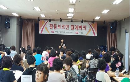 약 100명의 활동보조인이 참여하였으며, 메르스로 인하여 6월 월례회의가 7월에 진행되었습니다