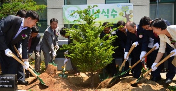 2부 기념식은 1층 앞마당에서 이루어졌습니다. 기념식수 및 비전선포식이 이루어졌습니다.
