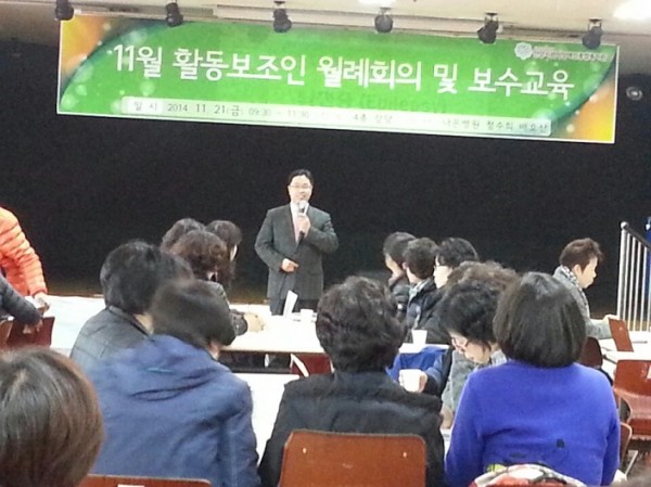 2014년 11월 21일 금요일에 활동보조인 월례회의 및 보수교육이 09:30~11:30까지 4층 강당에서 진행되었습니다.