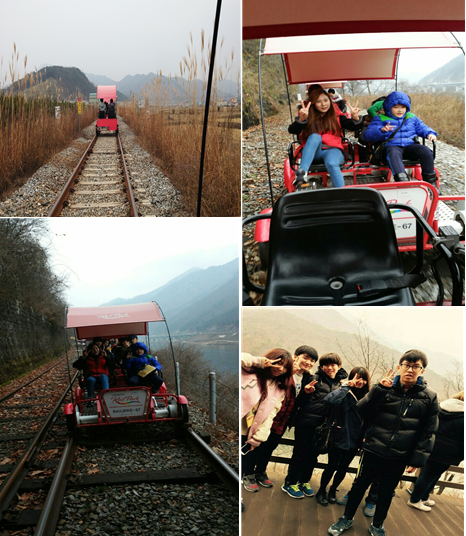 11/22(토) 토요문화존 마지막 회 차는 친구들과 함께 강촌역으로 레일바이크를 타러 갔습니다. 출발하때부터 하늘에서는 비가 내려서 타지 못하거나 타면서 친구들과 자원봉사자들이 고생할까봐 걱정부터 앞섰습니다. 하지만 걱정과는 달리 거짓말처럼 도착하자마자 비는 멈췄고 계획된 일정에 맞춰 사고 없이 잘다녀왔습니다. 페달을 쉬지않고 밟아야 했기 때문에 조금은 힘이 들었지만 옆에서 웃어주고 즐거워하는 친구들의 모습을 보니 다시금 힘을 내서 페달을 밟을 수 있었습니다. 사고 없이 잘 참여해준 친구들과 옆에서 친구들을 살뜰히 챙겨준 자원봉사자들에게 다시 한번 감사하다는 말을 전합니다."감사합니다"
