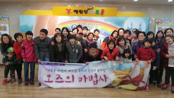 목록 가족나들이 다녀왔어요~ 페이지 정보 상담지원담당자 조회 3,688 입력 2014-11-07 16:15 댓글 0 본문 2014년 11월 1일 토요일. 관악부모회에서 자녀들과 함께 가족나들이를 다녀왔습니다. 서울 역삼동에 위치한 예림당아트홀에서 '오즈의 마법사' 뮤지컬 공연을 관람하였습니다. 뮤지컬 공연을 관람하고 맛있는 점심 식사 후 서울숲으로 이동하여 가을의 정취를 느낄 수 있는 좋은 시간을 가졌습니다. 목록 이전글의료재활팀 3차 뇌병변 문화존 잘 다녀왔습니다. 2014.11.27 다음글활동보조인 연합체육대회 2014.10.30 댓글 0 댓글목록 등록된 댓글이 없습니다.