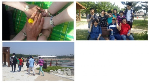 2014년 5월 22일 주간보호센터 차오름반이 1차 체험학습을 시흥갯골생태공원으로 다녀왔습니다. 축제시기가 맞지 않아 염전체험을 하지 못했지만 시대에 따라 변화된 염전에 대해 알 수 있었고 공원 내에 있는 높이 22m의 전망대에 올라 주변 경치를 감상할 수 있었습니다. 또한 공원의 그늘에서 돗자리 피고 둘러 앉아 토끼풀로 팔찌도 만들고 노래도 부르고 도란도란 이야기도 나누었습니다.