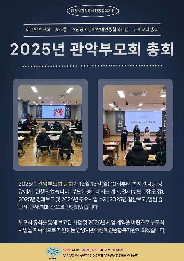 목록 ★2025년 관악부모회 총회★ 페이지 정보 서재현 조회 454 입력 2025-12-15 13:30 댓글 0 본문 목록 이전글2025 장애인활동지원기관 송년행사 2025.12.15 다음글아동발달센터_'마음을 두드리는 작은전시회' 2025.12.12 댓글 0 댓글목록 등록된 댓글이 없습니다.
