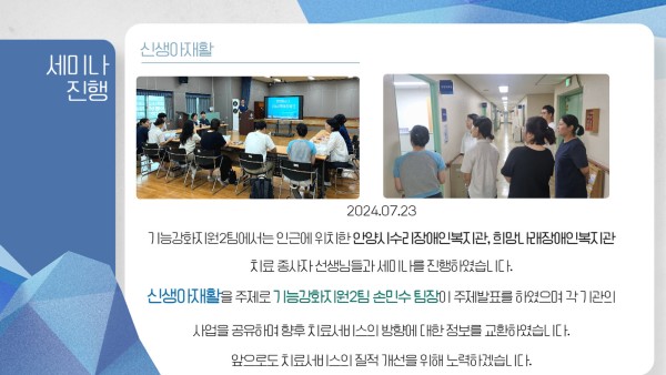 기능강화지원2팀에서는 2024.07.23 기능재활네트워크를 진행하였습니다.
