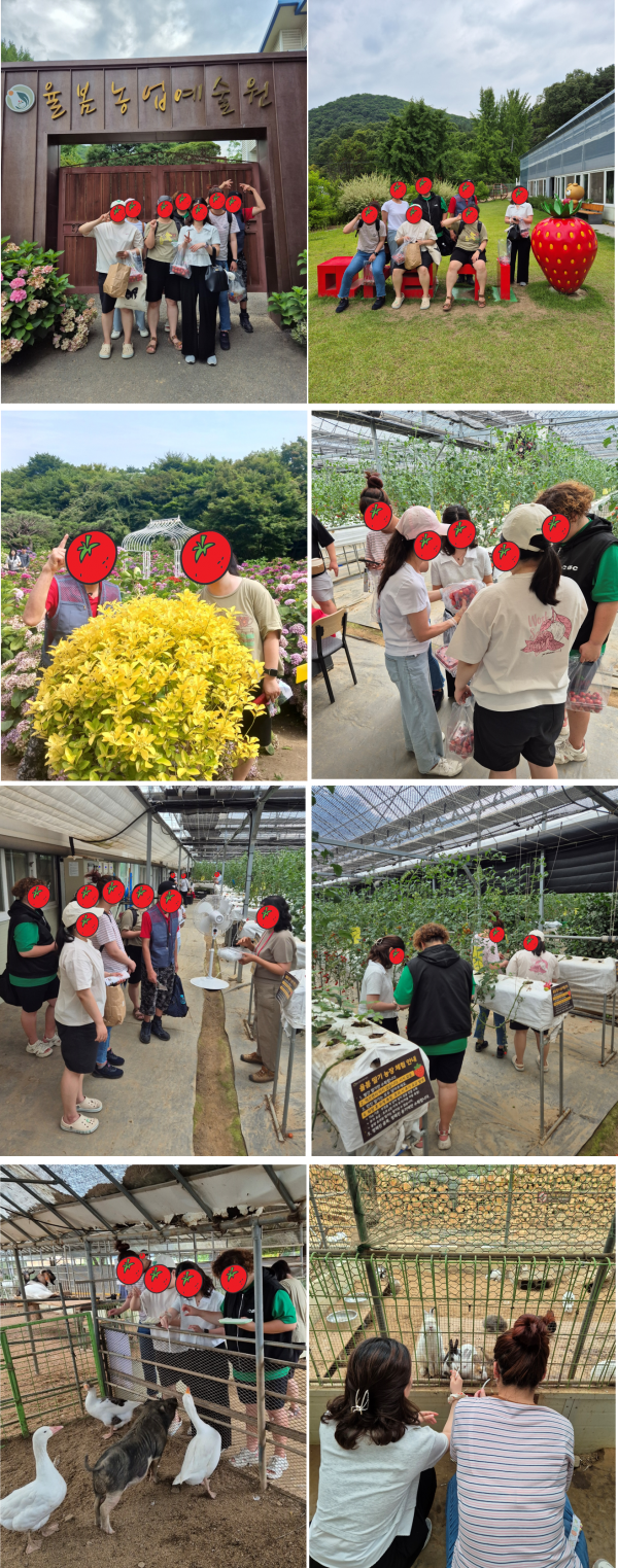 지난 6월 29일에 진행된 "이달의 나들이" 프로그램이 무사히 잘 마무리되었습니다. 이번 나들이는 복지관을 이용하고있는 장애인 및 보호자를 대상으로 율봄식물원에서 진행하는 토마토체험에 다녀왔습니다.